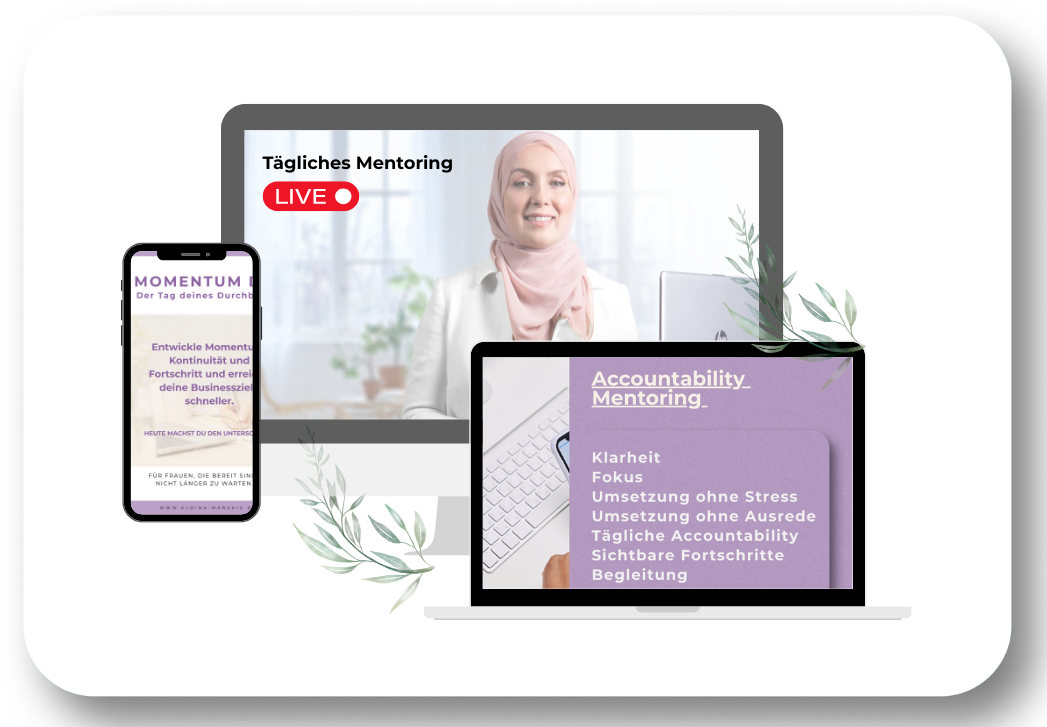 Wenn du bereit bist, endlich täglich umzusetzen, dein Business voranzubringen und echte Ergebnisse zu sehen – statt nur zu planen – dann ist mein Accountability & Momentum Mentoring genau für dich.